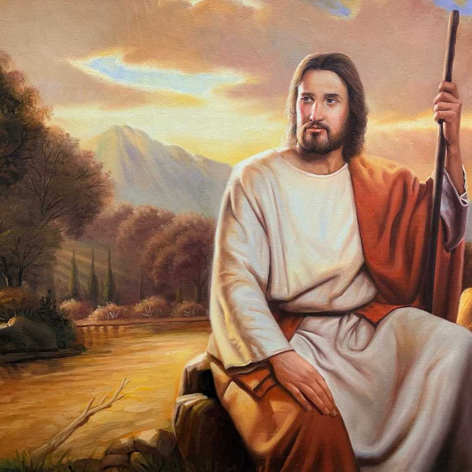 Hand-Painted 100% Jesus Oil Paintings 36in X 24in Abstract Style Digital Print on Cotton with Frame Mounting