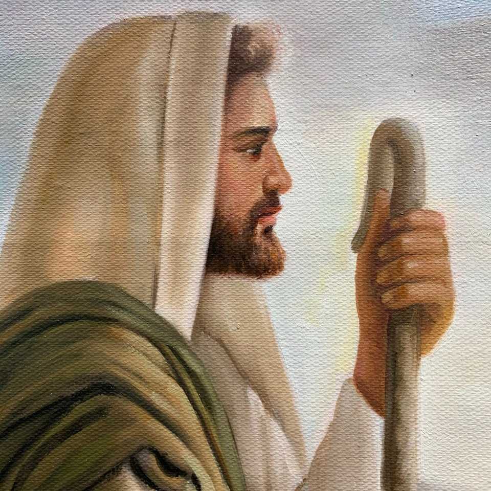 Hand-Painted 100% Jesus Wall Art Modern 36in X 24in Oil Paintings with Flower & Figure for Living Room Decoration