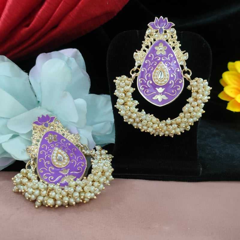 Delicate Elegant Dangle Earrings Hand Painted Chandbalis with Pearls Unique Artistic Soft Graceful Touch Fashion Accessory