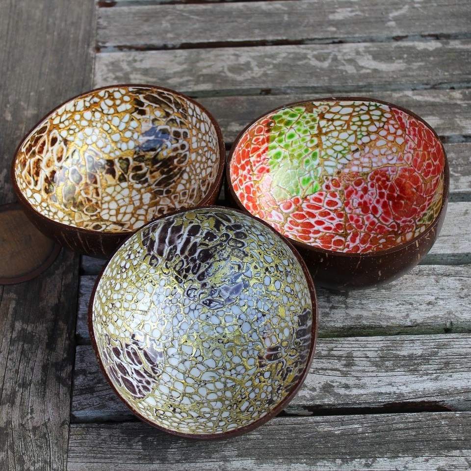 Hand Painted Coconut Bowl Vietnam Coconut Shell Artistic Design Vietnam Handicraft Decoration Homeware Lacquer Coconut Shell