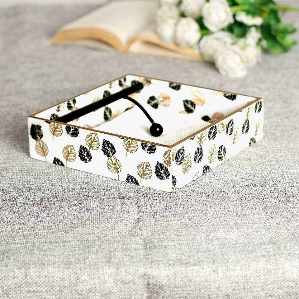 Hand Painted Custom Leaves Designing Napkin Holder Wooden Napkin Holder Dinnerware Accessories Wooden Tissue Dispenser Holder