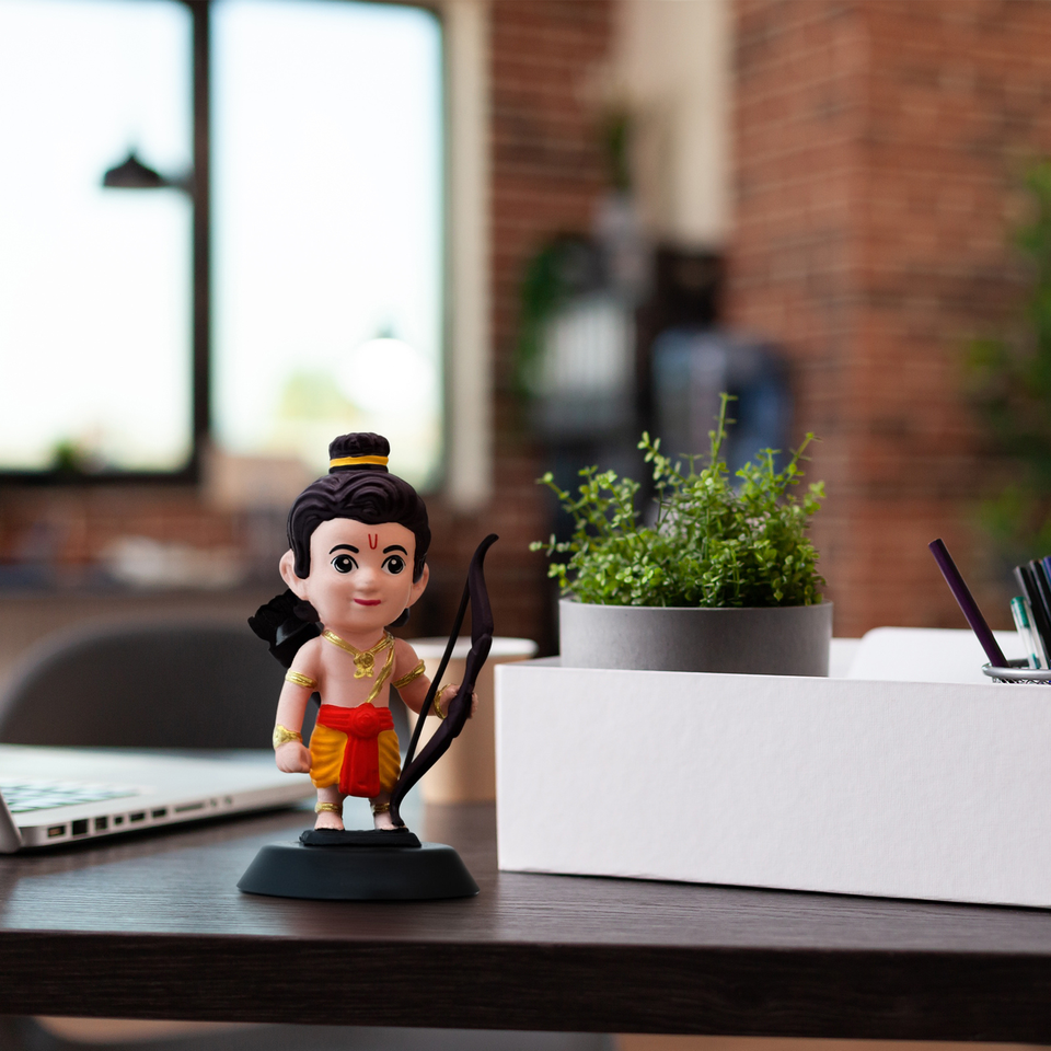 Hand-Painted Lord Rama Idol Natural Finish Spiritual Decorative Showpiece for Home Temple, Office Desk, Car Dashboard & Gift