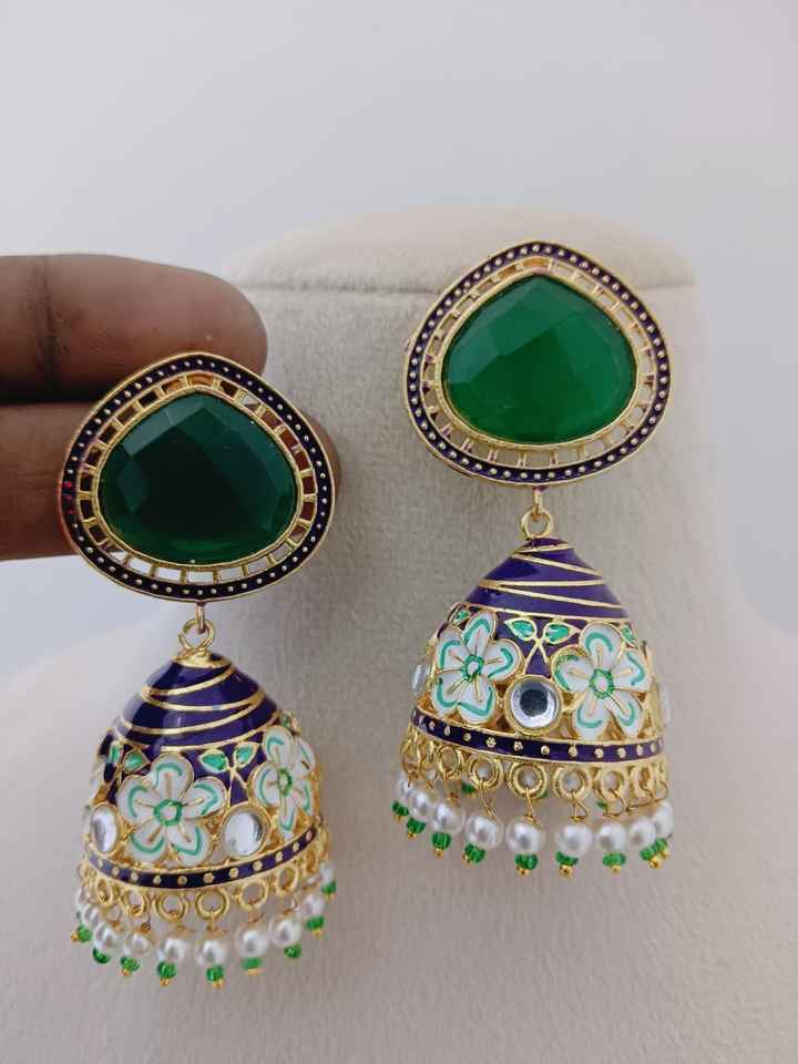Hand-Painted Red Meenakari Brass Imitation Pearl 2.5 Inch Drop Earring Set Unique Collection Handmade Artisan Women