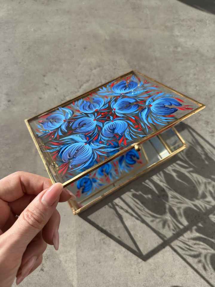 Hand Painted Square Shape Glass Jewelry Ring Boxes With Golden Finished Perfect for Storing Rings Necklaces and Fine Accessories