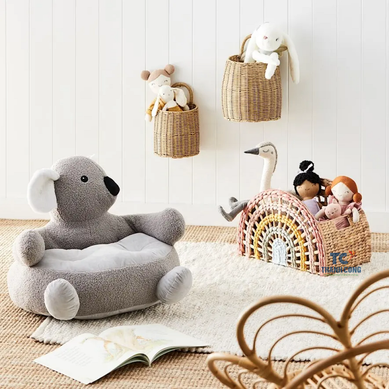 Hand Painted Water Hyacinth Rainbow Baskets for Kids Eco-friendly Storage Kid Basket