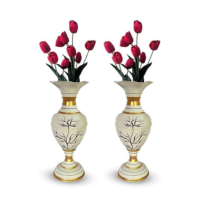 Hand-Painted White & Gold Steel Eco-Friendly Vase 16Inch for Garden Home and Office Pack of 2