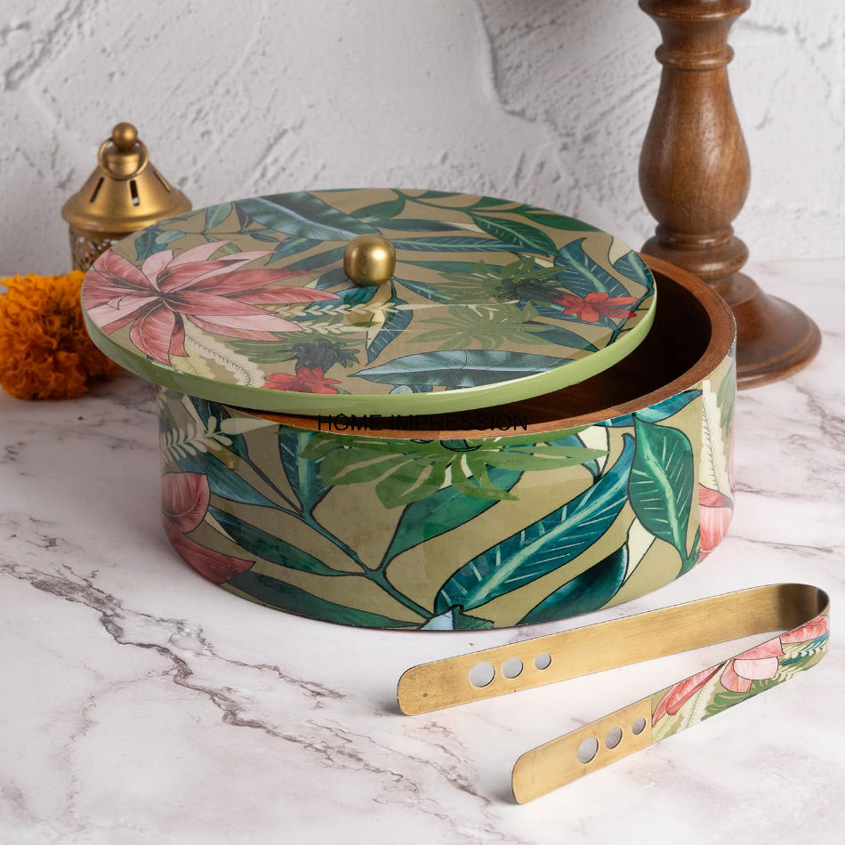 Hand Painted Wooden Roti Box Custom Designer Table Ware Classic Roti Chapati Box For Hot Selling Large Resorts Kitchen Chapati
