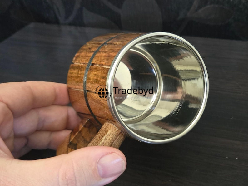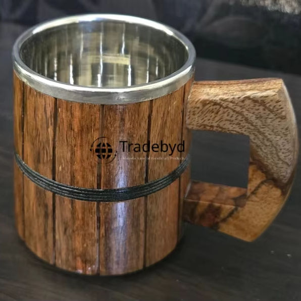 Hand-Polished Wide Wood Mug for Coffee Cold Drinks Eco-Friendly Plastic Drinkware for Earthy Lifestyles Tradebyd Ready Giftware