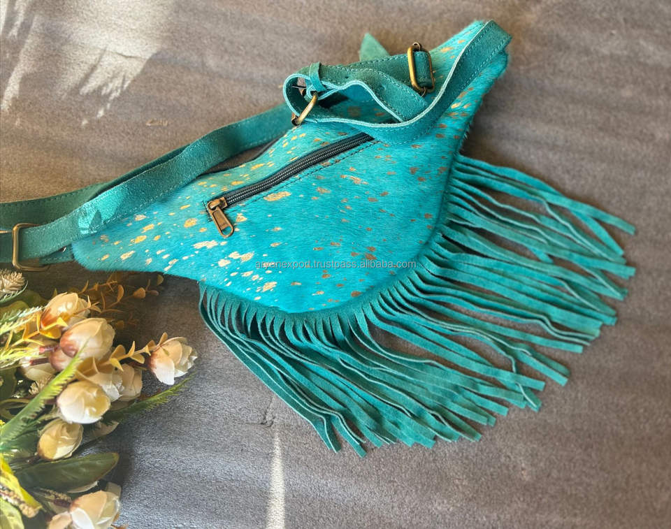Hand Stitched Cowhide Metallic Fur Leather Hip Bags Multi Color Hip Pockets Belts Waist Pocket Belt Fringe Cow Hair Fringe Belts
