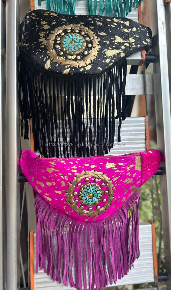 Hand Stitched Cowhide Metallic Fur Leather Hip Bags Multi Color Hip Pockets Belts Waist Pocket Belt Fringe Cow Hair Fringe Belts