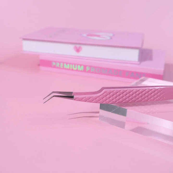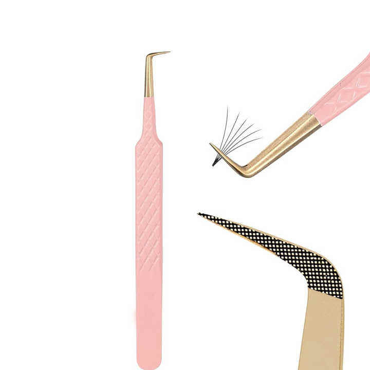 Hand Tested Wholesale Stainless Steel Diamond Grip Eyelash Tweezers/ 90 Degree Angle Volume Lash Tweezer