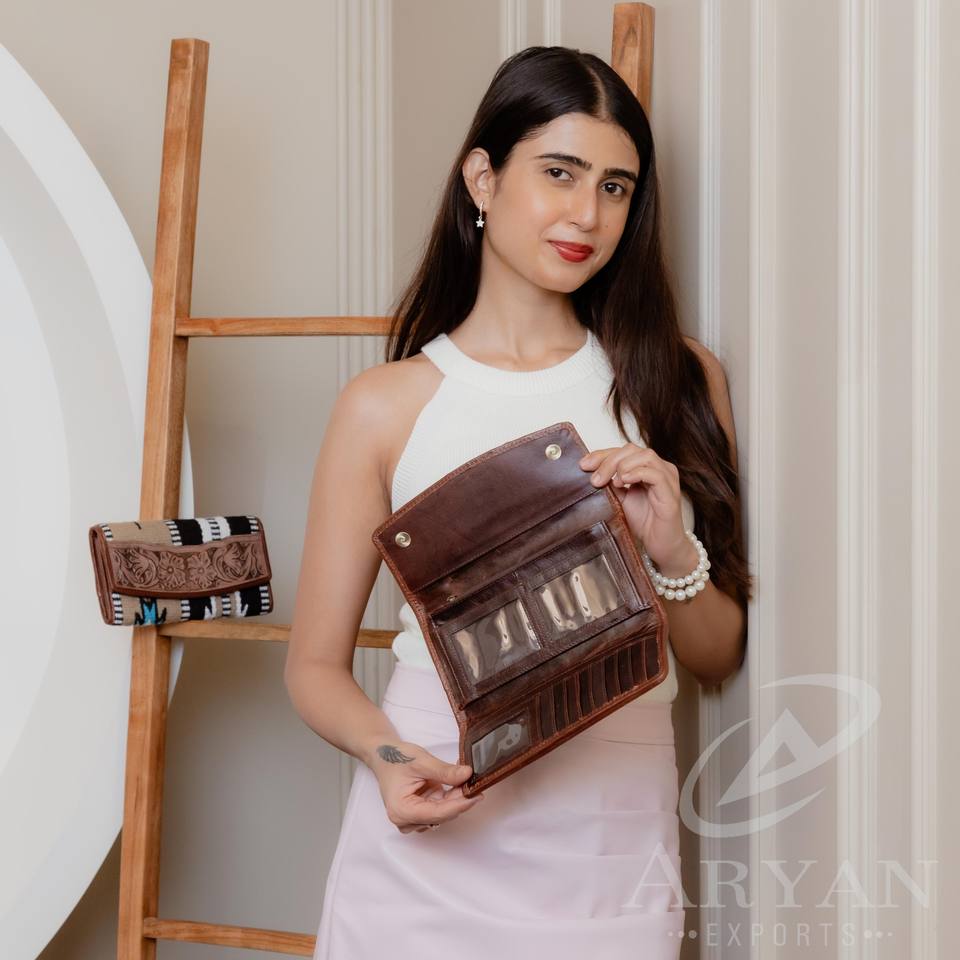Product Name:Hand Tooled Black Saddle Blanket Trifold