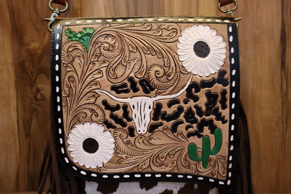 Hand Tooled Bohemian Cow Hair Leather Purse for Women Fashionable Shoulder/Crossbody Messenger Bag Handmade Lady Leather Bag