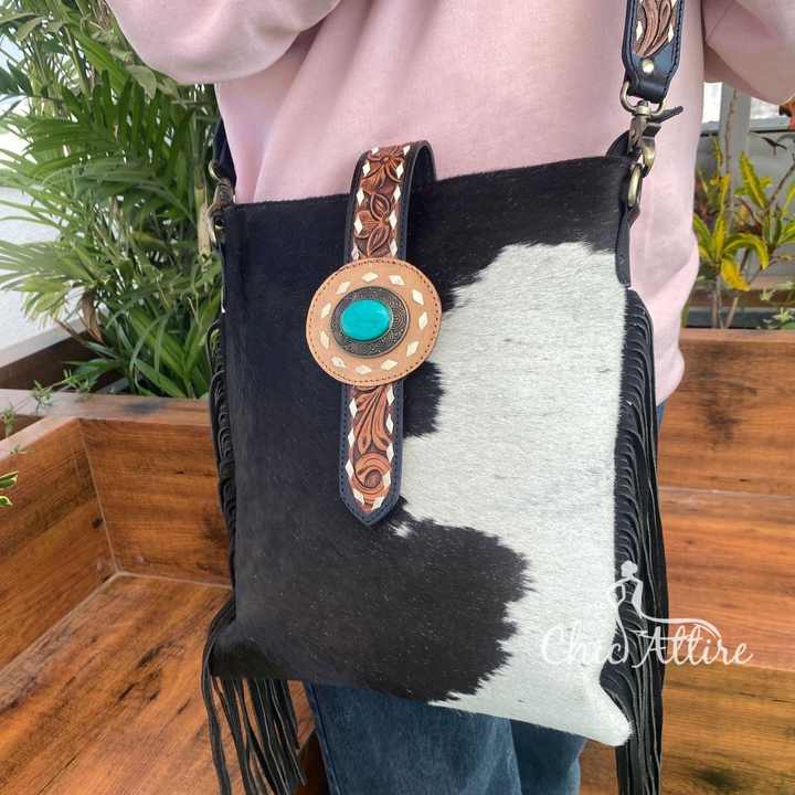 Hand Tooled Carving Handbag Real Cowhide Fur Leather Fringe Bohemian Bags New Style Hot Selling Bags for Women