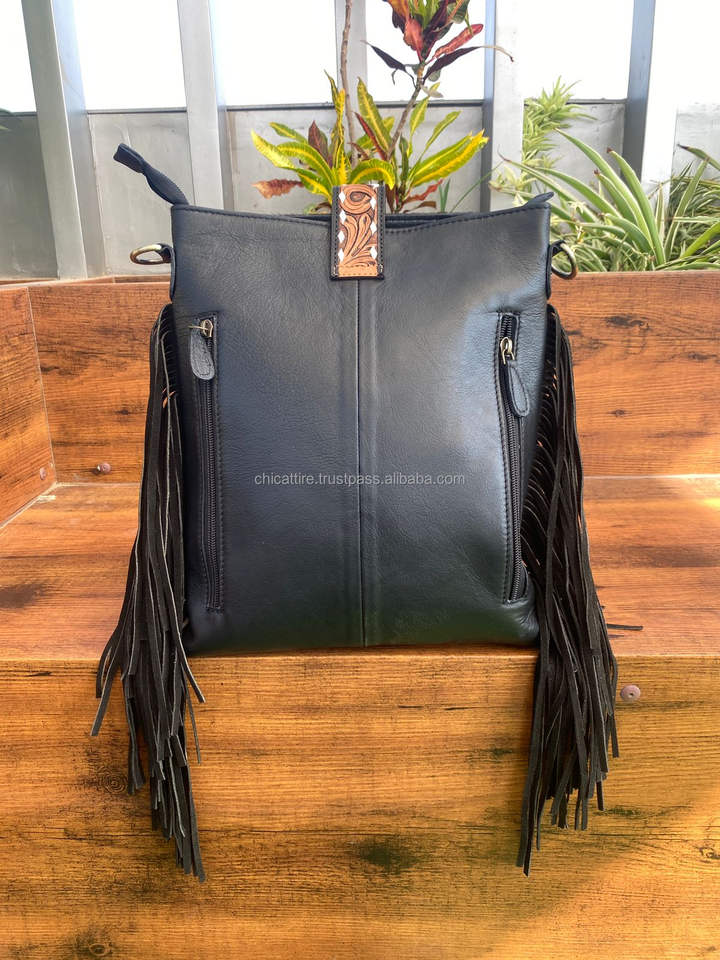 Product name:Tooled Leather Fringe Handbag