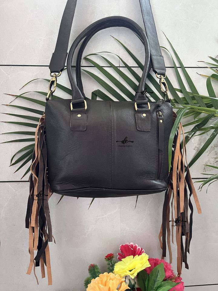 Hand Tooled Carving Leather Fringe Handbag Cowhide Fur Leather Gypsy Boho Vintage Handmade Designer Tote Bag Stylish Bags