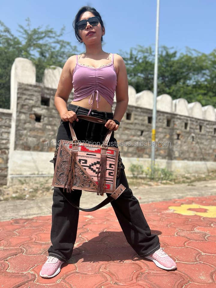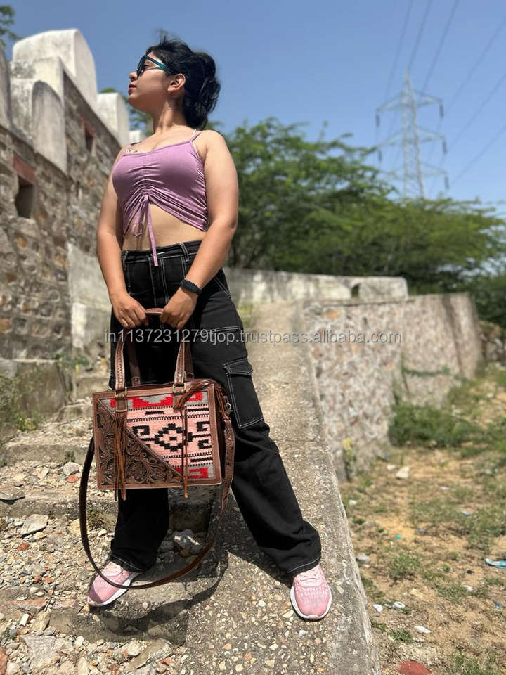 Product name:Designer Aztec Tooled Leather Tote Bag
