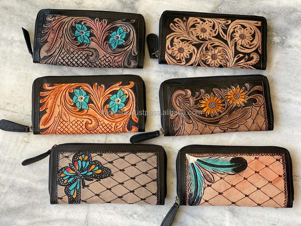 Hand Tooled Carving Leather Wallet Clutch Phone Case Stylish Multi Uses Western Leather Wallets Handmade Brown Leather Clutch