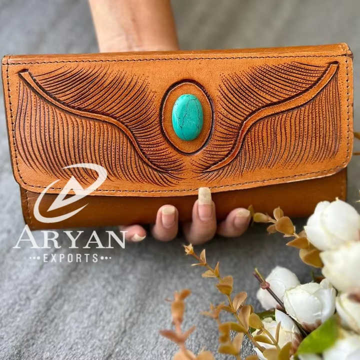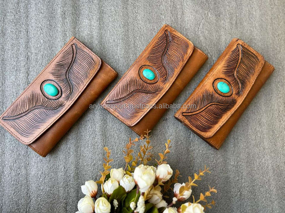 Hand Tooled Carving Wallet Clutch Phone Case Stylish Genuine Leather Games Stone Wallet Multi Uses Western Leather Wallets
