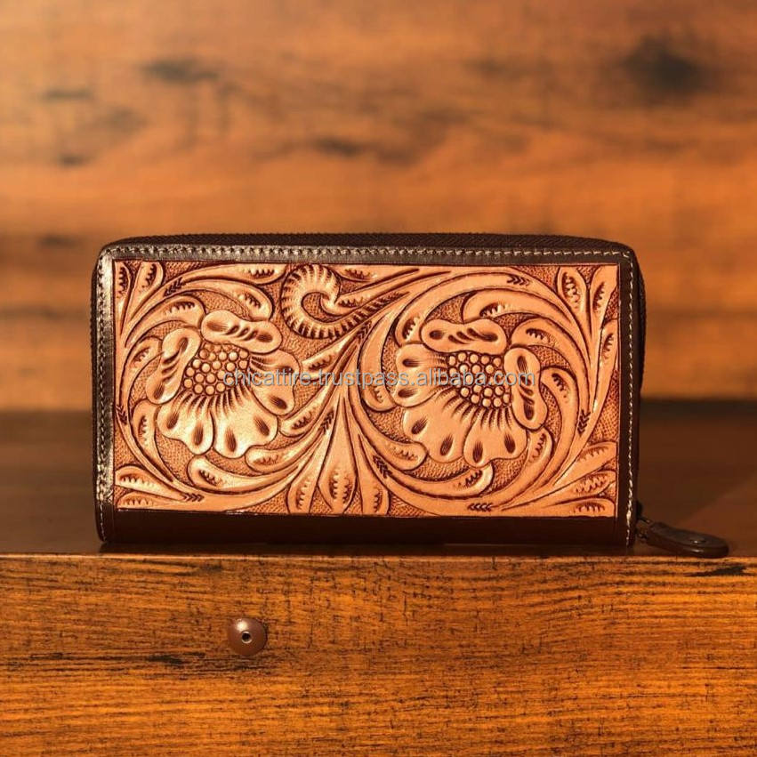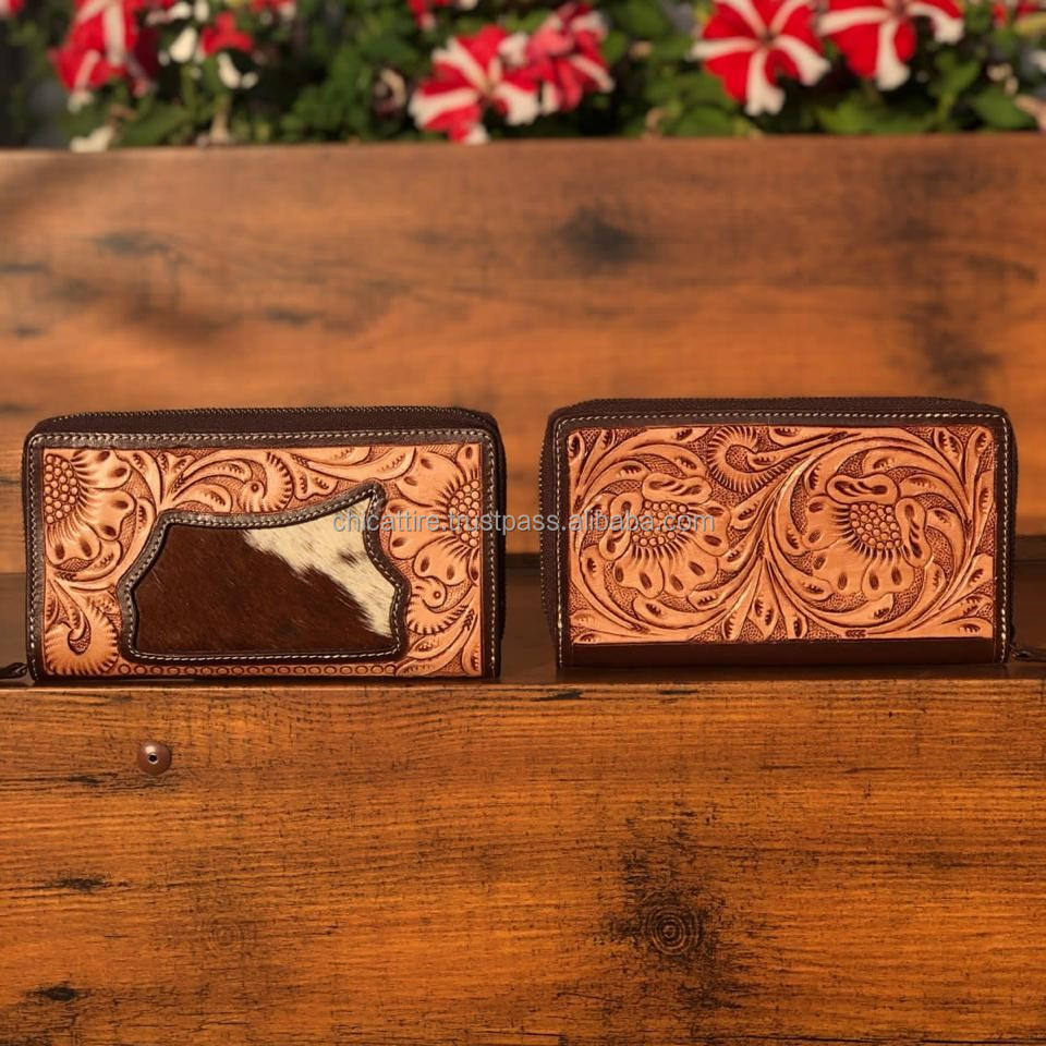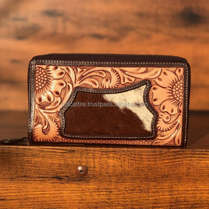 Hand Tooled Carving Wallet Clutch Phone Case Stylish Cowhide Leather Hot Sale Wallet Multi Uses Western Cowhide Leather Wallets