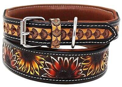Hand-Tooled Classic Lace Padded Solid Flower Leather Dog Collar with Stainless Steel Buckle and Western Design