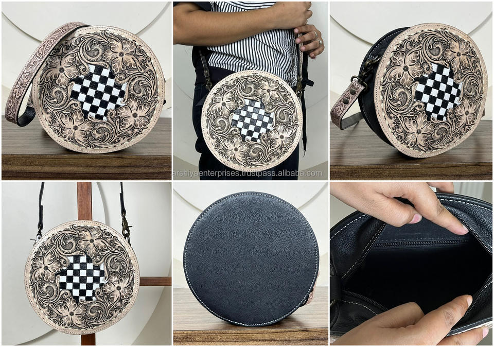 Product name:Checkered Leather Round Shoulder Crossbody Bag