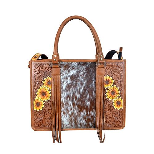 Hand-Tooled Cowhide Bohemian Cosmetic Bag for Women Hair-On Hide Leather Shoulder Purse Made India Daily Use Travel Spring