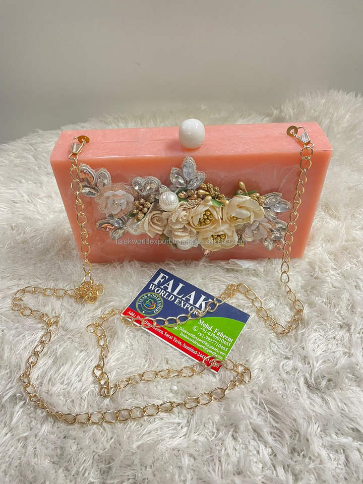 Hand Tooled Cowhide Resin & Ston Wristlet Purs Hand Painted Floral Genuine White Golden Seed Bead Metal Clutch Bag Beaded Clutch