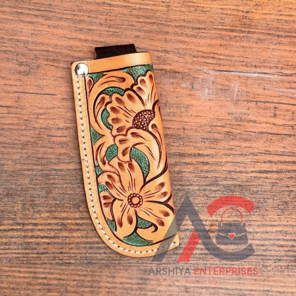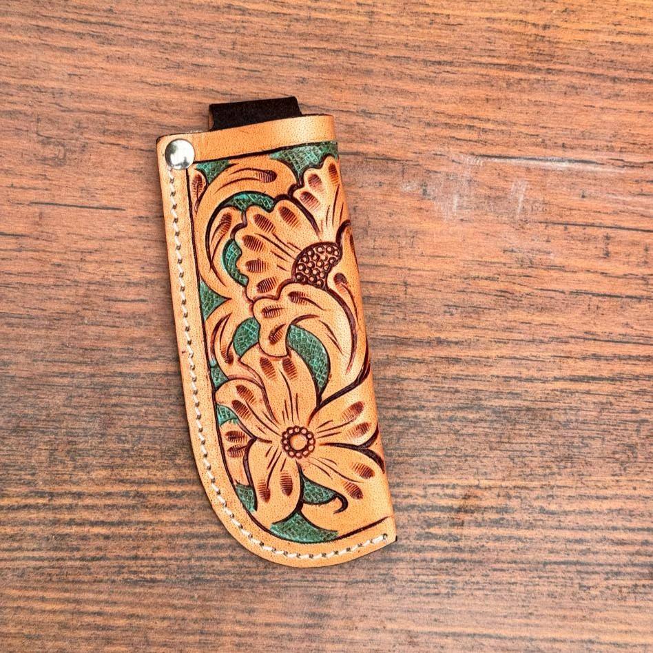 Hand Tooled Folding Pocket Knife Sheath Turquoise Floral Genuine Leather Knife Sheath Western Outdoor Gear Hunting Knife Sheath
