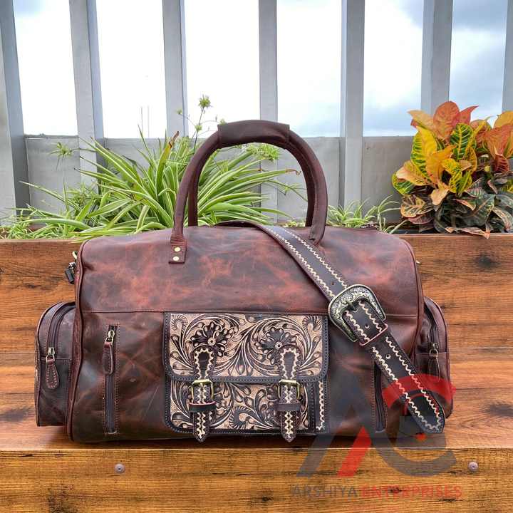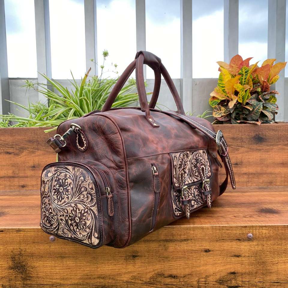Hand Tooled & Full Grain Buffalo Leather Large Duffel Bag Genuine Leather Overnight Luggage Bag Travel Weekender Bags for Unisex
