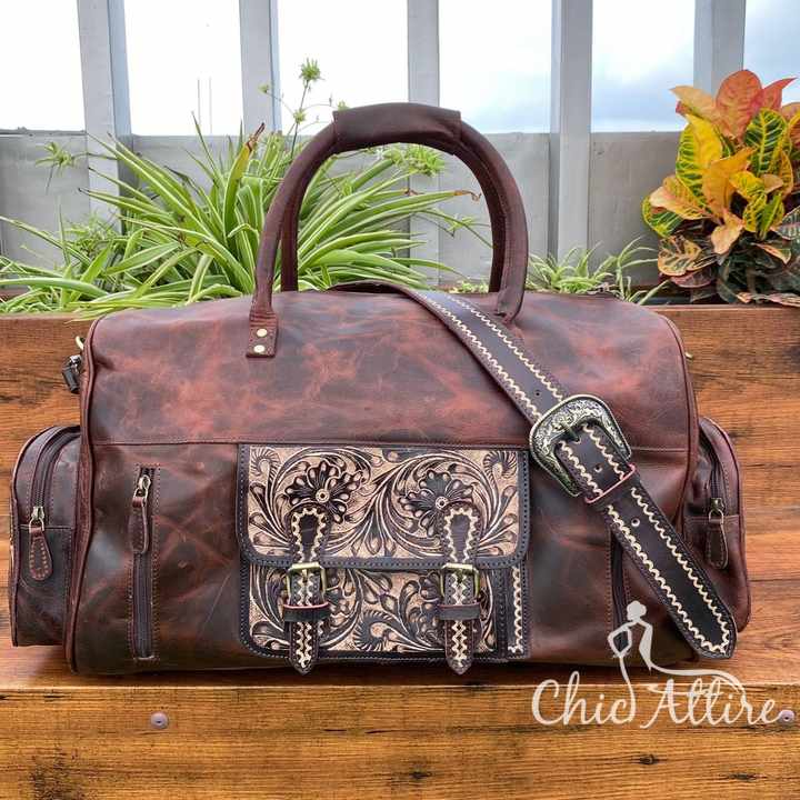 Product name:Hand Tooled Leather Duffle Bag