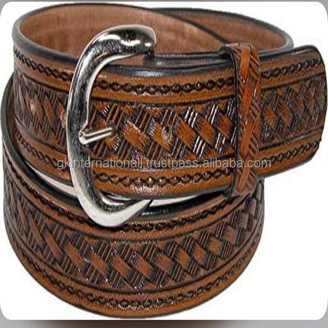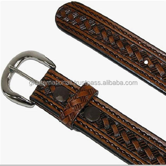 Hand Tooled Full Grain Leather Men's Basket Weave Western Fashion Belt in Two Colors Black and Brown All Custom Sizes Available