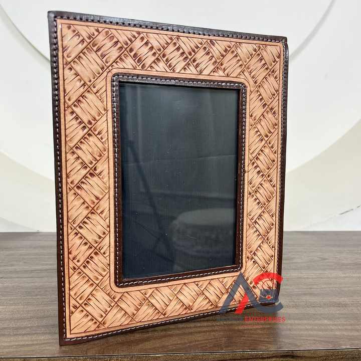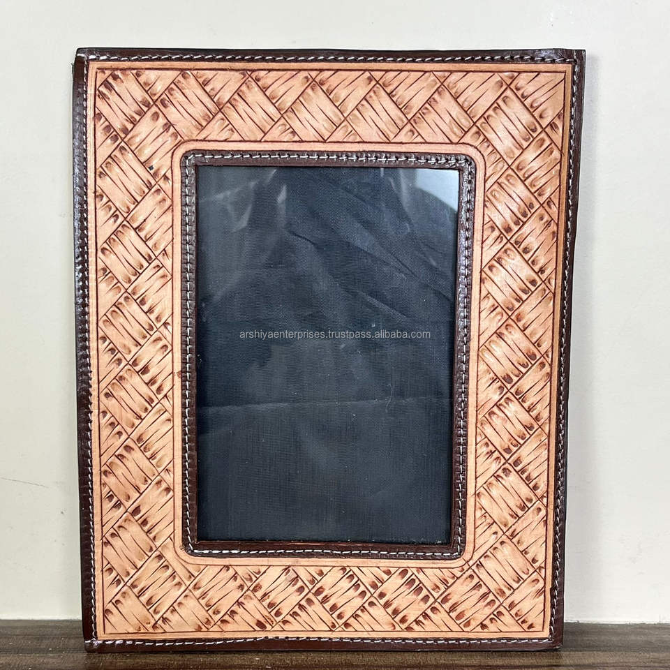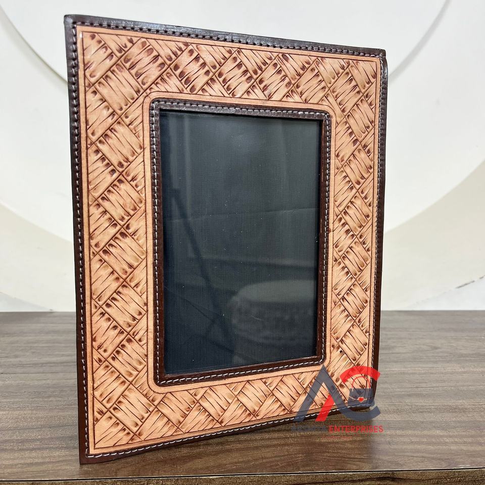 Product Name:Hand Tooled Checkered Leather Picture Photo Frame