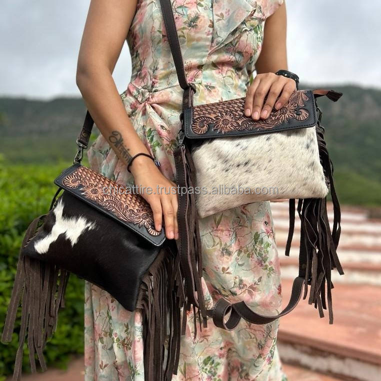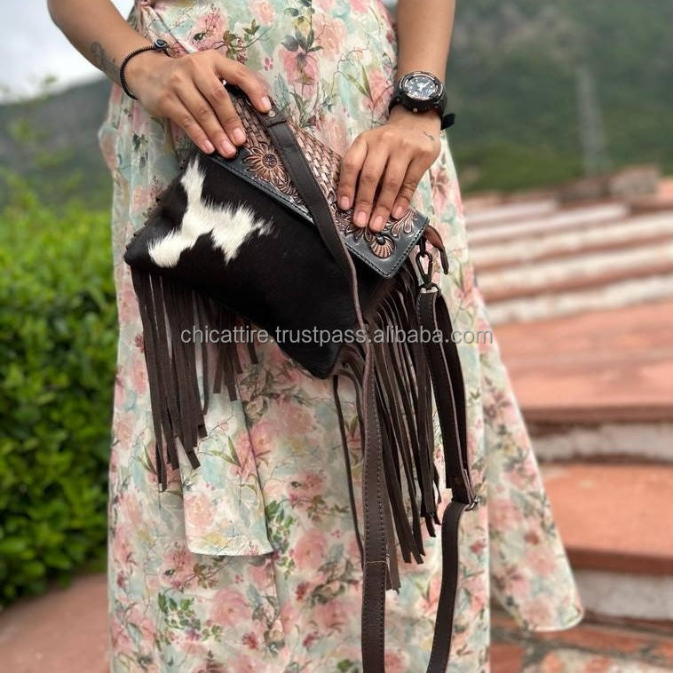 Product name:Hair on Hide Fur Leather Fringe Handbag