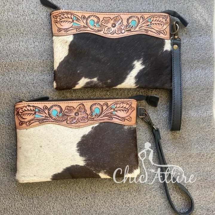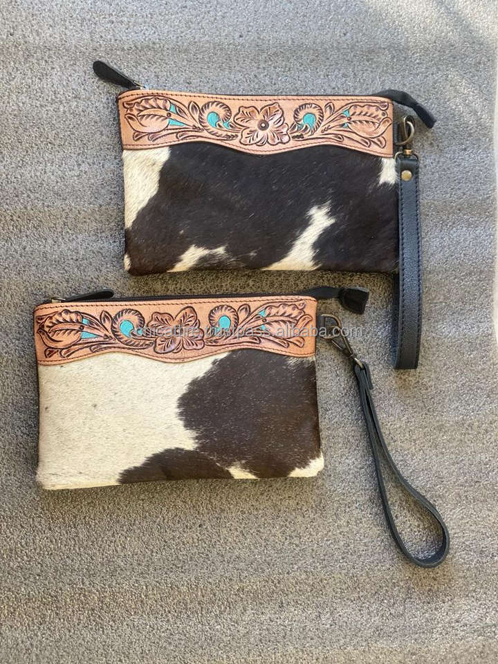 Hand Tooled Leather Clutch Purse Carving Genuine Leather Wristlet Clutch Western Leather Wallet Unique Stylish Wallets for Women