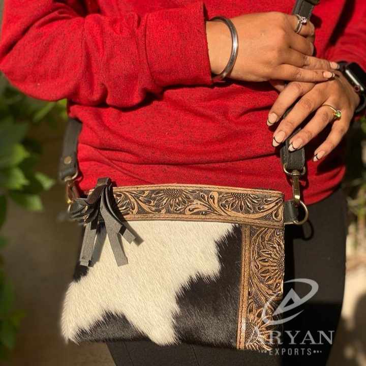 Product Name:Hand Tooled Leather Cowhide Mini Crossbody Bag