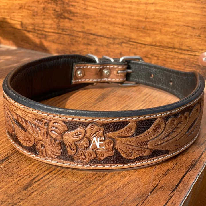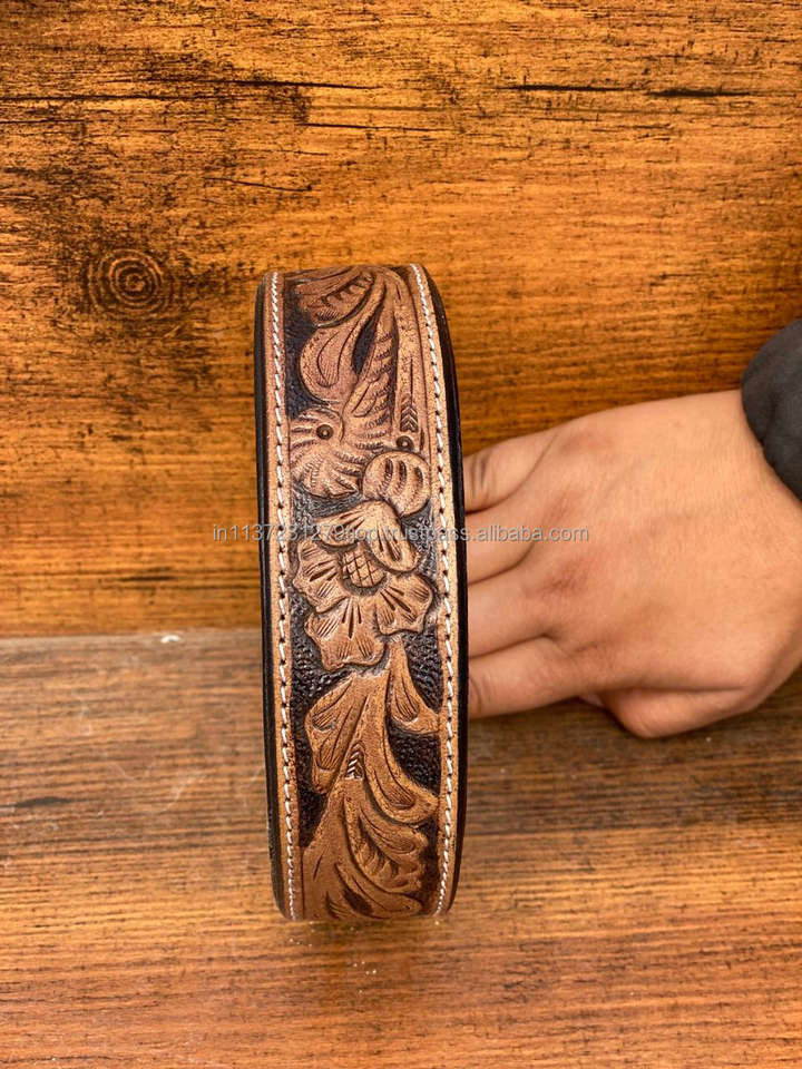 Pattern Type:Real Hand Tooled Leather Adjustable Dog Collars