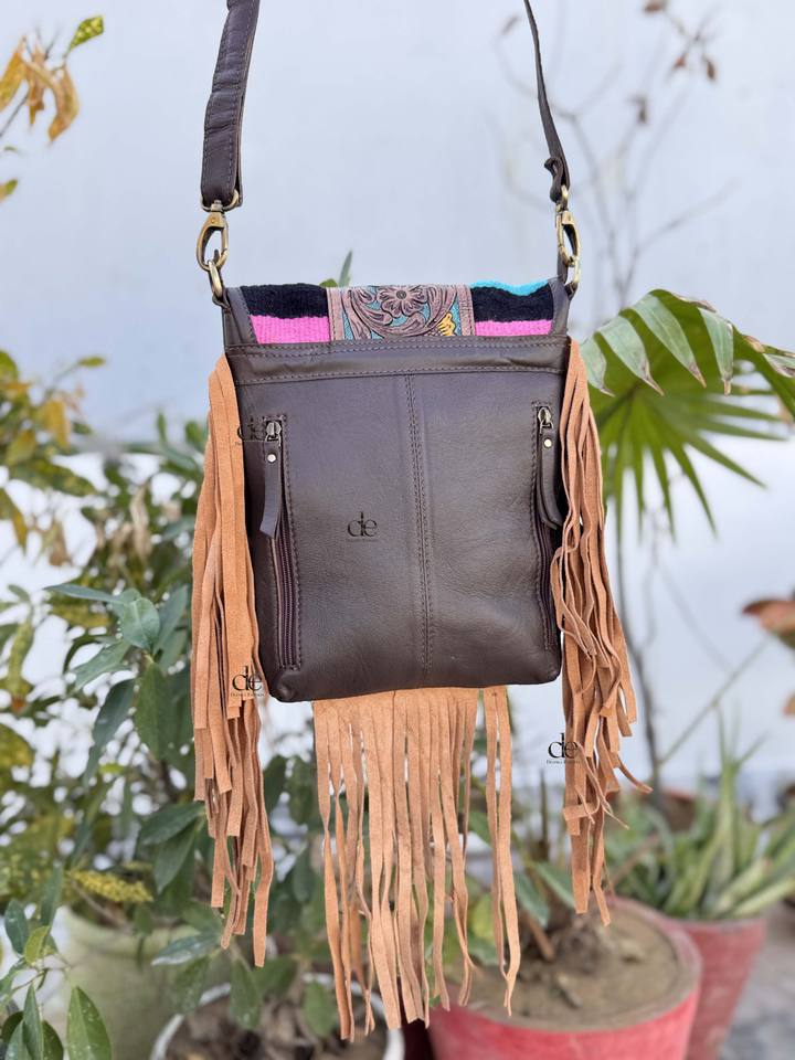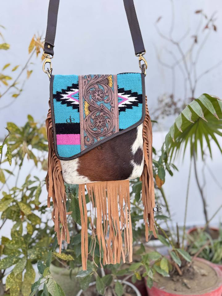 Hand Tooled Leather Handbag Real Cowhide Leather Bag Aztec Saddle Blanket Fringe Bags Sling Hot Selling Bags for Women