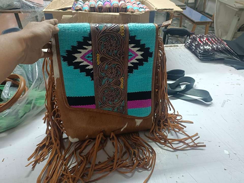 Hand Tooled Leather Handbag Real Cowhide Leather Bag Aztec Saddle Blanket Fringe Bags Sling Hot Selling Bags for Women