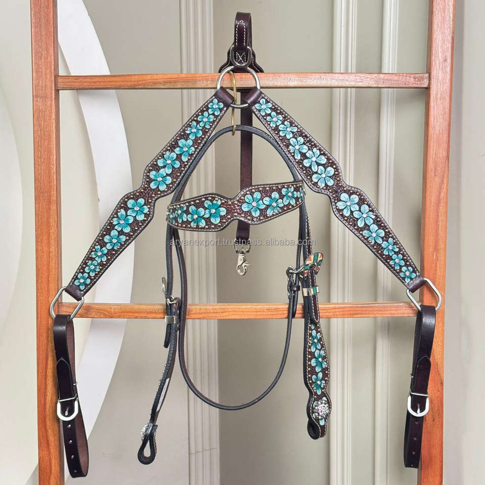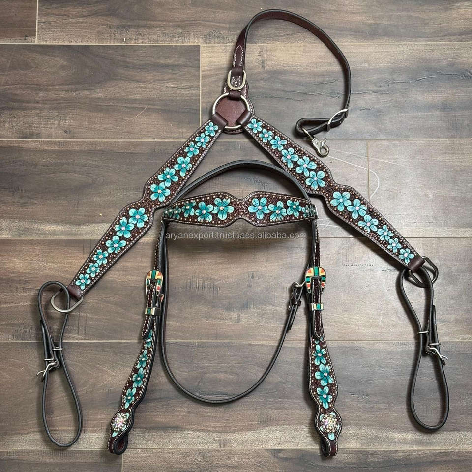 Hand Tooled Leather Horse Headstall Horse Breast Collar SetProduct name