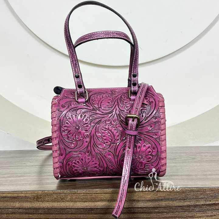 Hand Tooled Cowhide Leather Small Speedy Duffel Bag