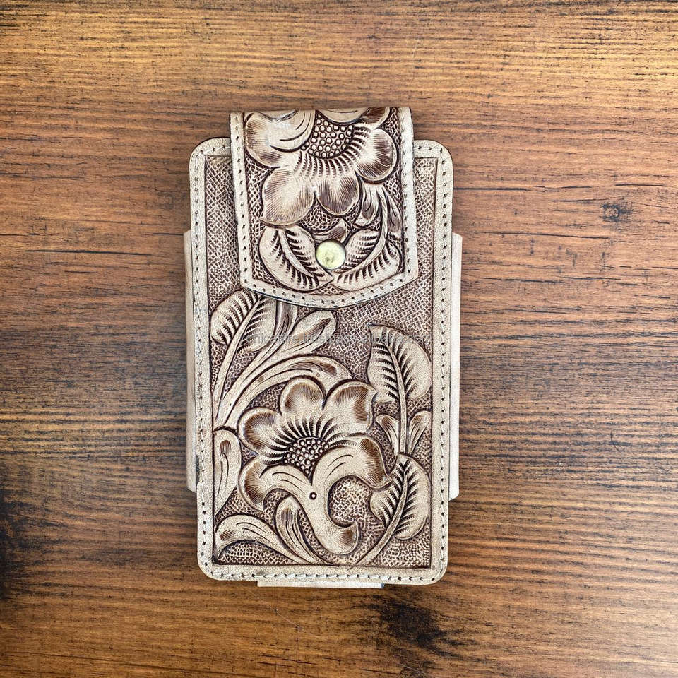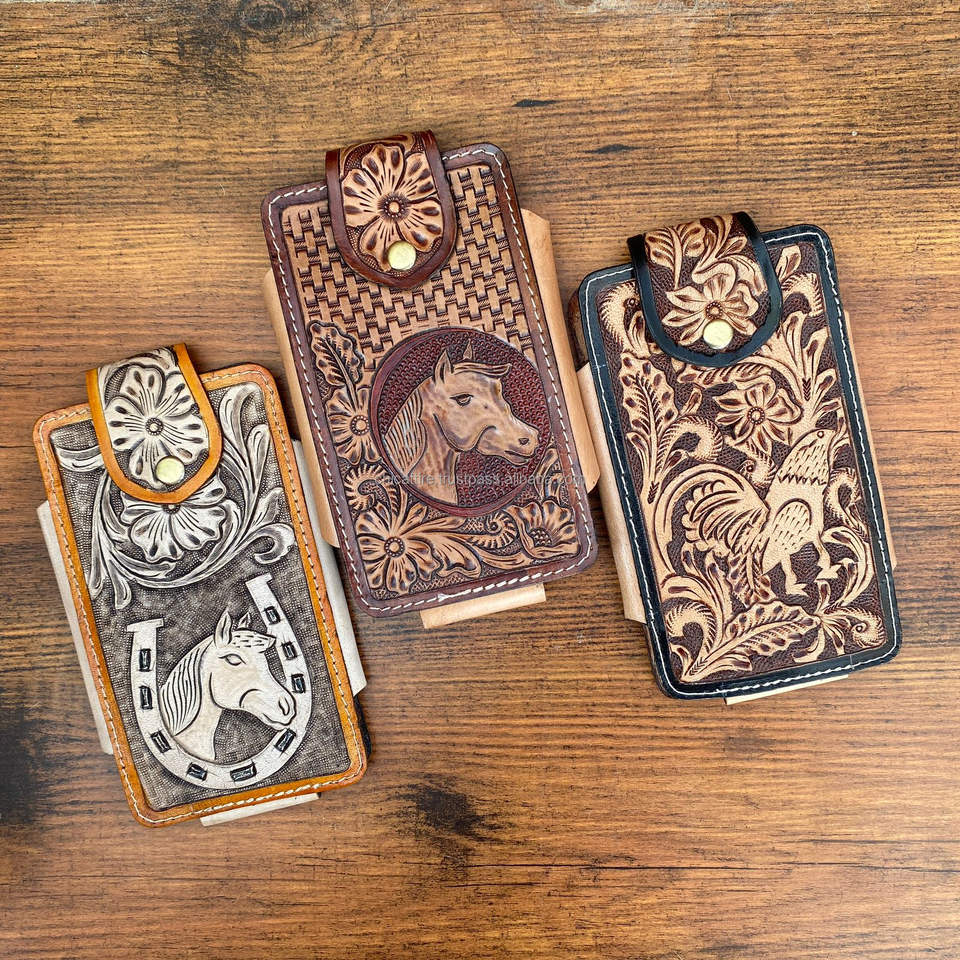 Hand Tooled Leather Mobile Phone Case Protect Cell Phone Holder Sport Portable Belt Loop Genuine Leather Phone Holster for Men