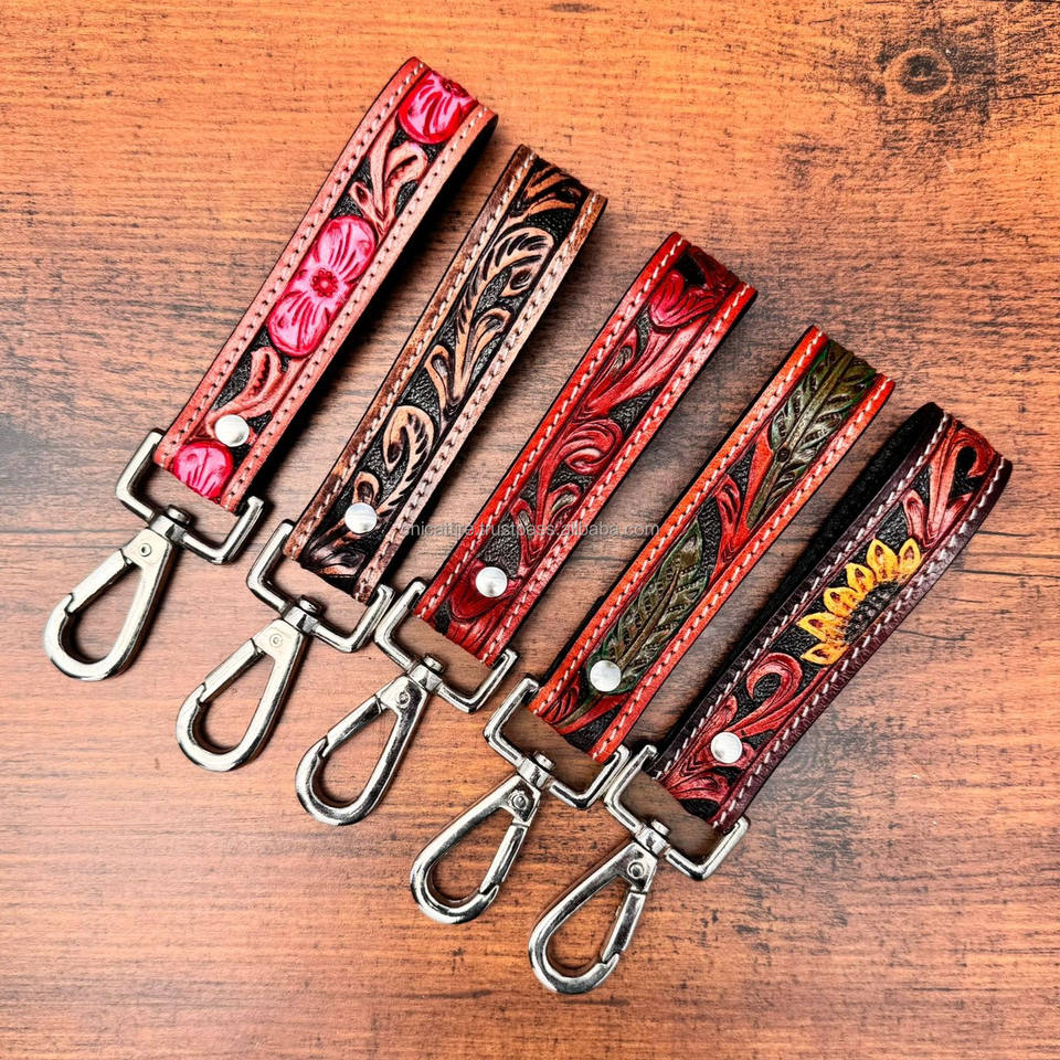 Product name:Hand Tooled Leather Small Wristlet Keychain