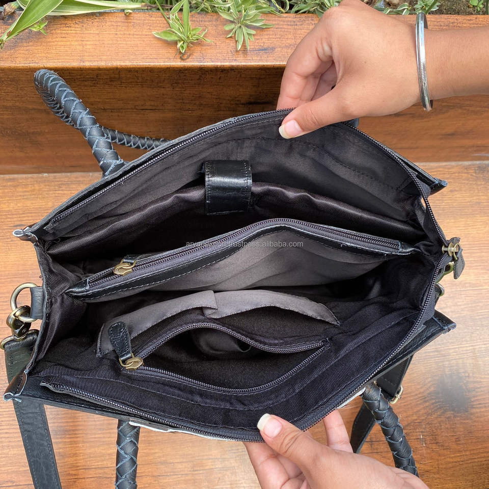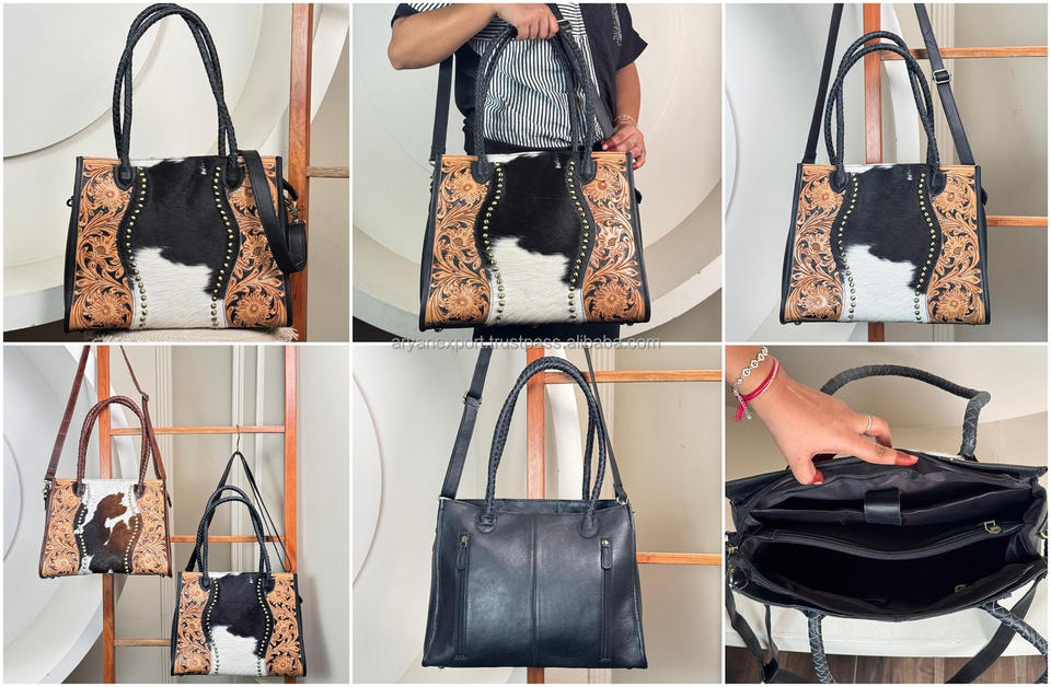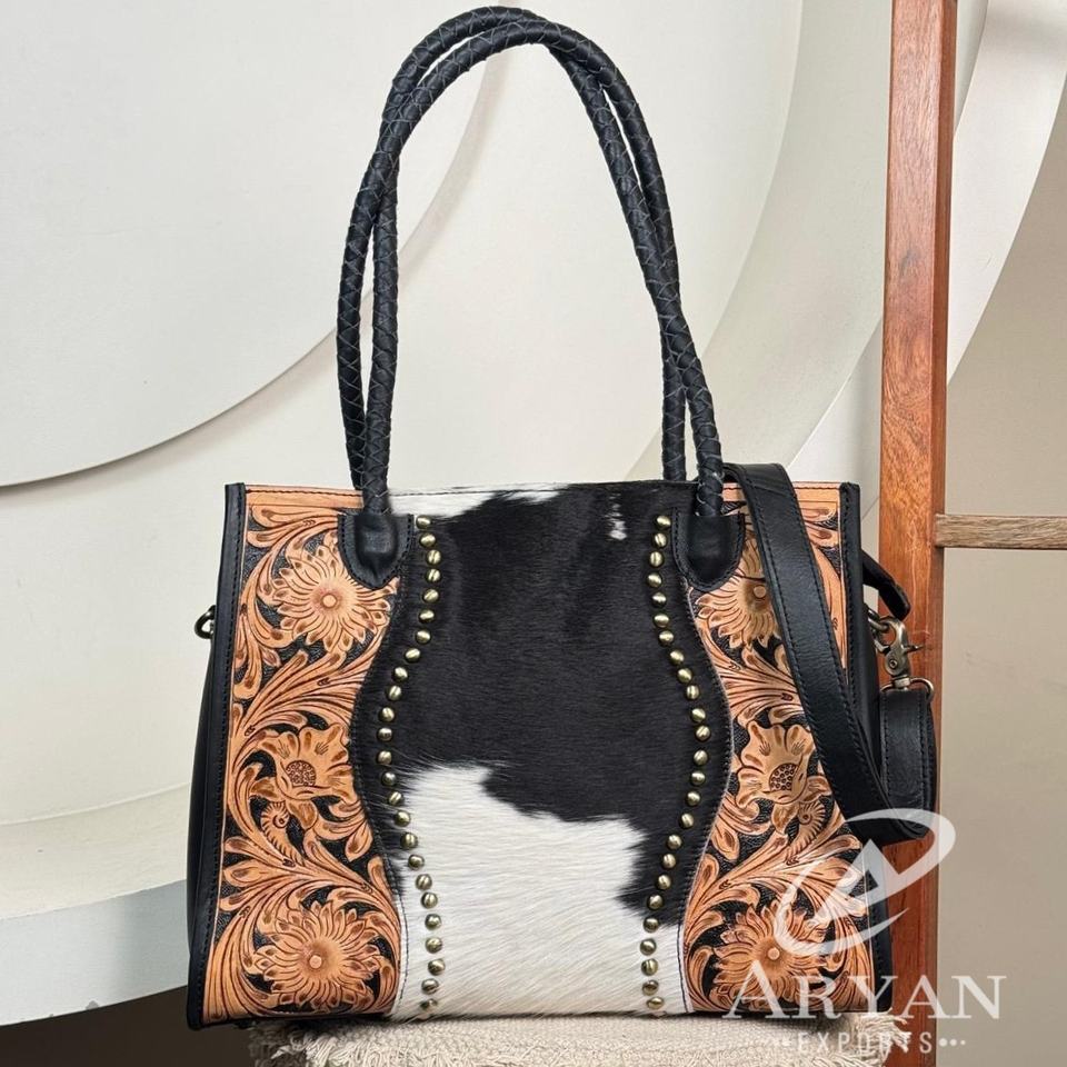 Hand Tooled Cowhide Leather Crossbody Tote Bag
