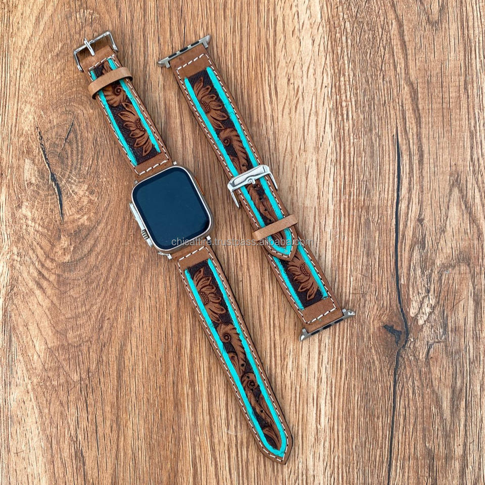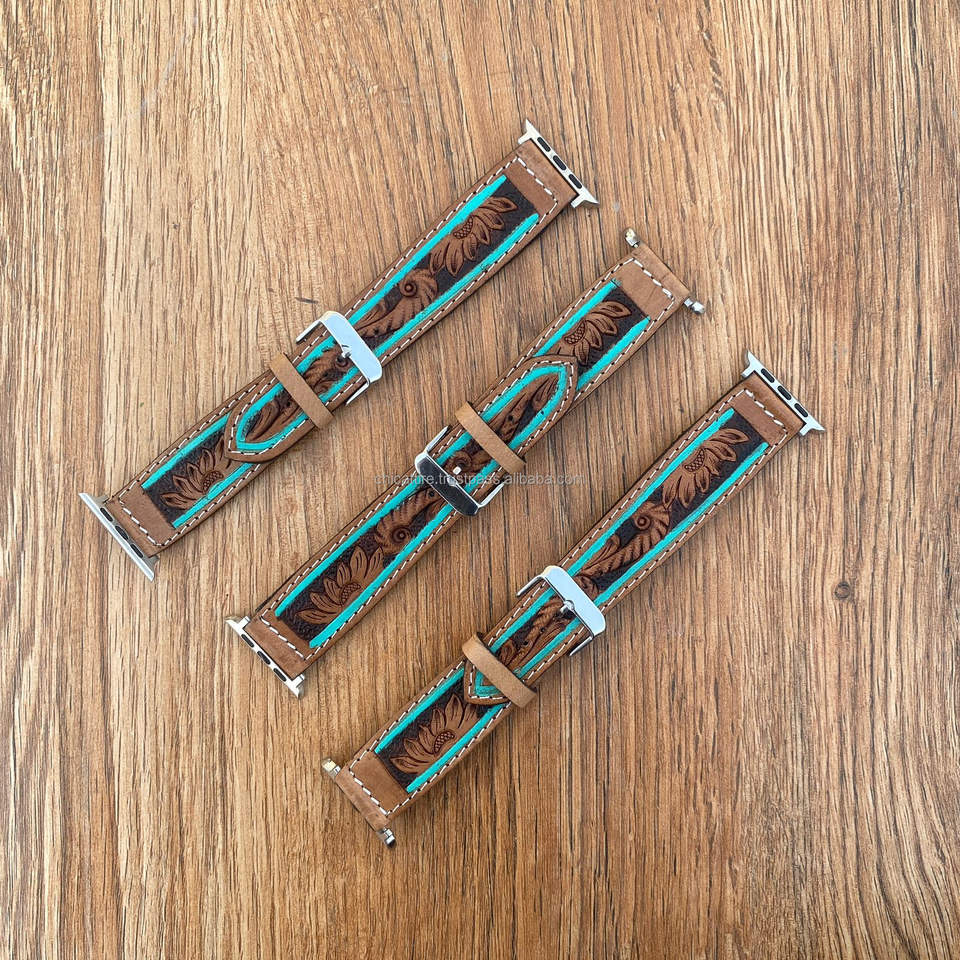 Hand Tooled Leather Strap Manufacturer Replacement Cow Leather Watch Bands Handmade Quick Release Genuine Leather Watch Straps