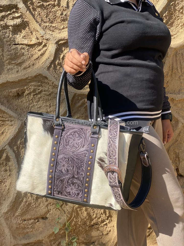 Product name:Hair On Tooled Leather Tooled Leather Tote Bag