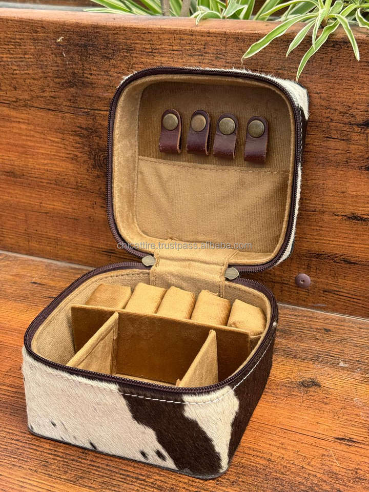 Hand Tooled Leather Travel Jewelry Case Genuine Cowhide Leather Jewelry Box Easy Storage Organizer Fashion case for Women's
