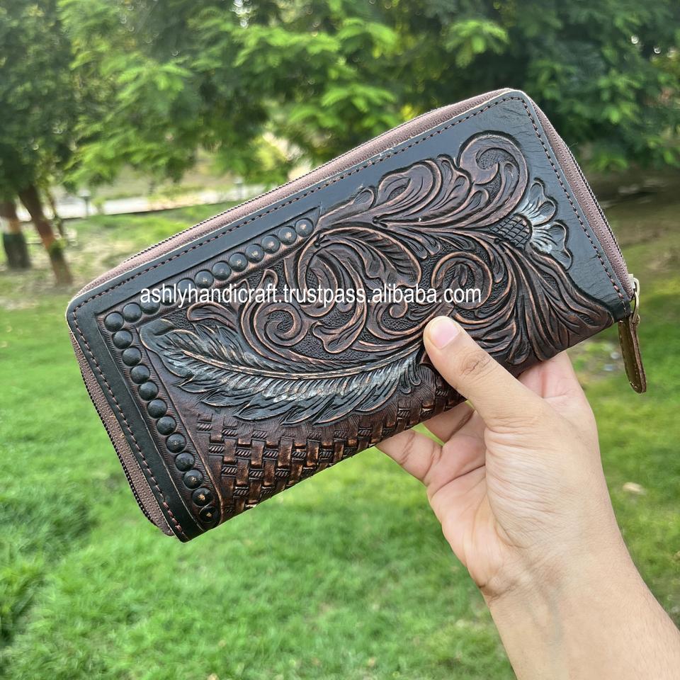 feature:Portable, Others, Other, Cowhide tooled hanbag main opening zip closure, Inside opening zip closure cases carry id cases