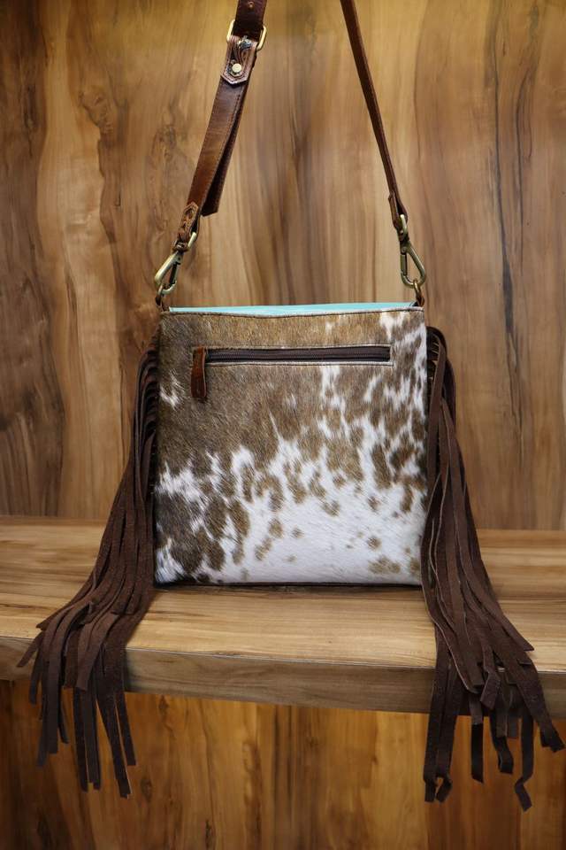 Product:Tooled Hair On Leather Messenger Bags