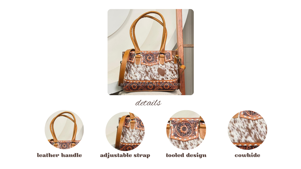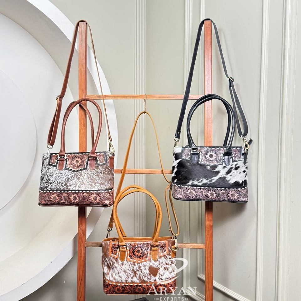 Product Name:Hand Tooled Cowhide Leather Crossbody Tote Bag